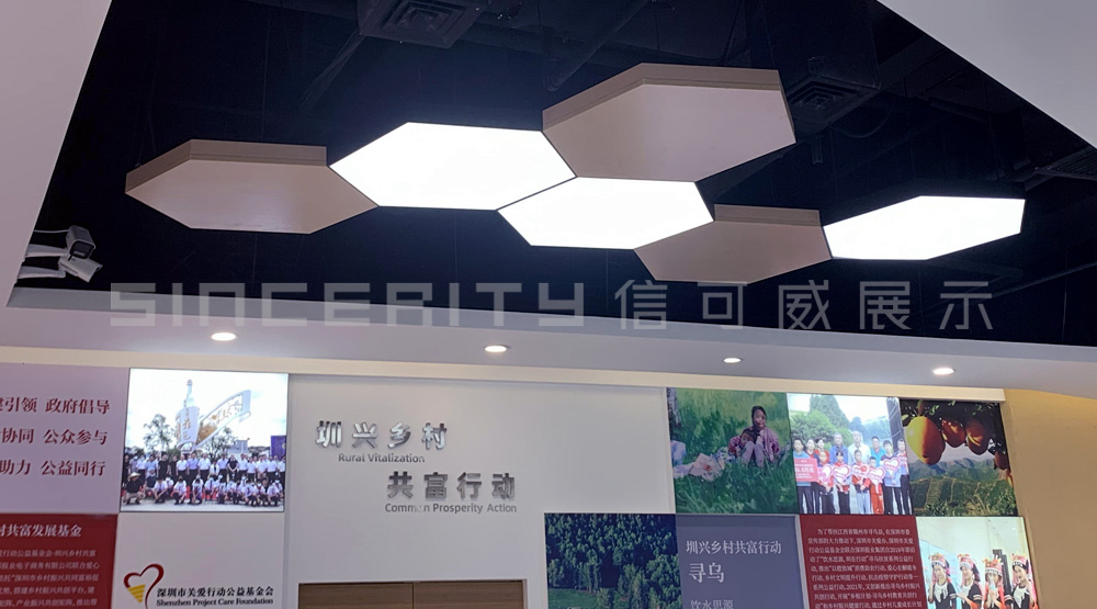 深圳(福田)振興鄉(xiāng)村消費(fèi)扶貧展示廳面積1300平米,包括“大國戰(zhàn)略”、“圳興有我”、“圳興有禮”、“圳興發(fā)布”、“圳興滋味”五大功能區(qū),整個(gè)展示館本著“節(jié)儉、樸實(shí)、不奢華”原則,通過圖文展版、實(shí)物展陳、模型展示、場景還原等多種形式,綜合運(yùn)用聲光電技術(shù),搭建“鄉(xiāng)村振興+創(chuàng)新性協(xié)作服務(wù)平臺(tái)。